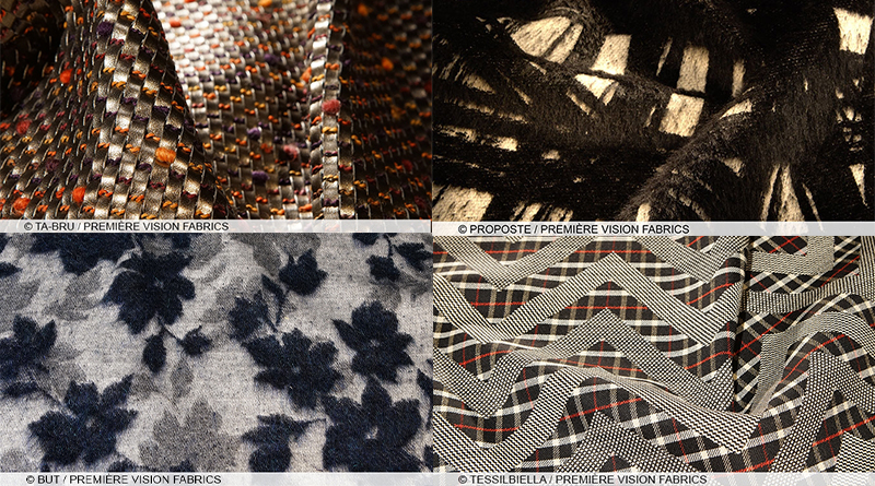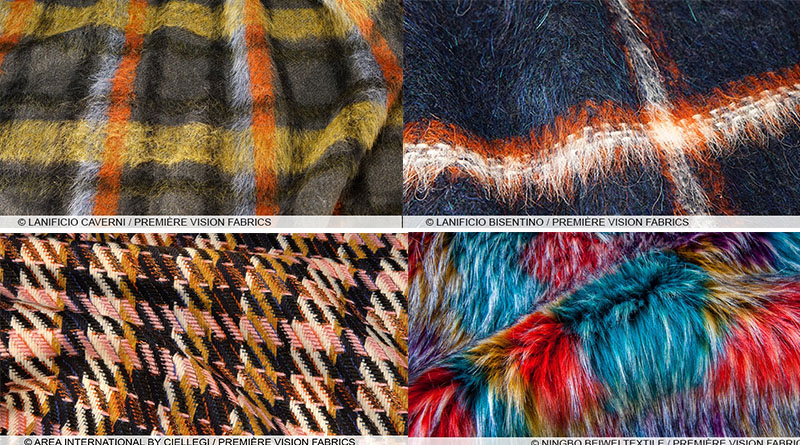 Как никогда, становятся популярны ткани с использованием принтов и рисунков, выполненных при помощи самых разных техник, как у тканей, использующихся для костюмов. Это могут быть ткани с самым разнообразным видом —  имитацией клетки, шотландки, полоски, елочки, «гусиной лапки», а также тканей с твидовым и репсовым переплетением.  В центре внимания клетка и орнамент «елочка»  огромных размеров. Очень толстые объемные нити в пряже, создающие рельеф в орнаменте, но, надо отметить, что  при этом сами ткани  очень легкие. Хлопки с начесом, шерстяные смешанные ткани, мягкие фланели с «костюмным видом» в трикотаже и тканых материалах