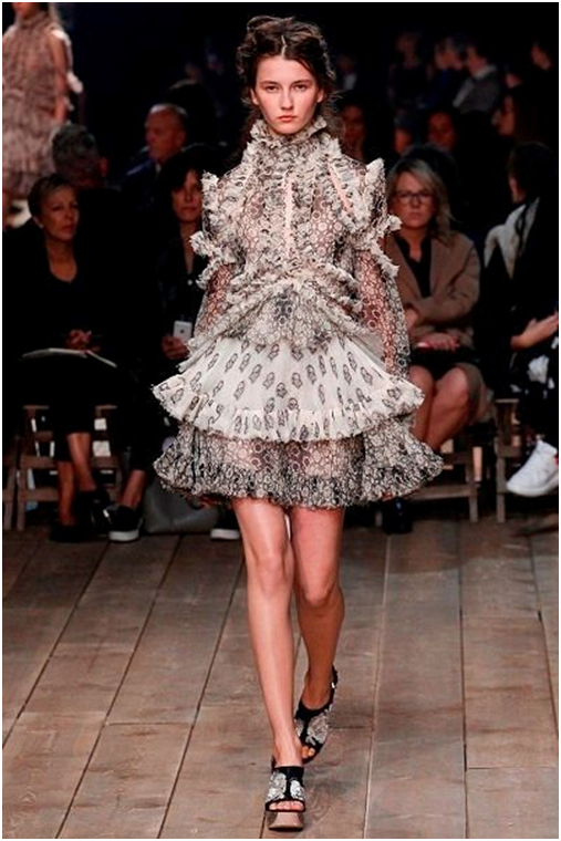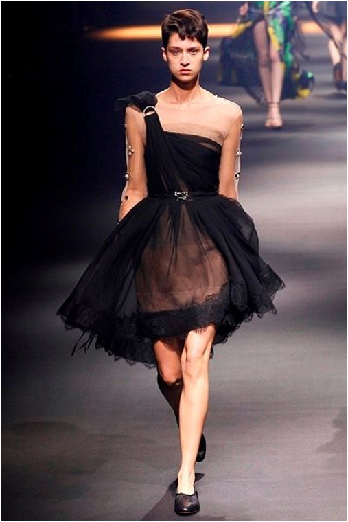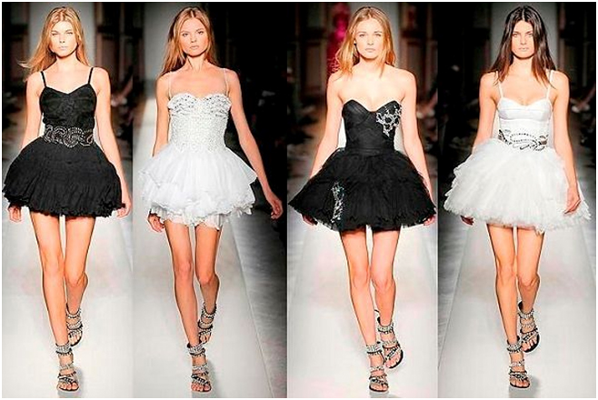 Короткие платья включили в свои коллекции такие бренды, как Lanvin и Alexander McQueen, но если дизайнеры первого отдали предпочтение асимметричному крою, то в коллекции второго представлено платье, которое украшает двухъярусная юбка-пачка.