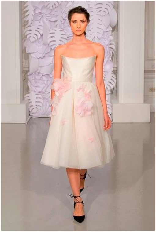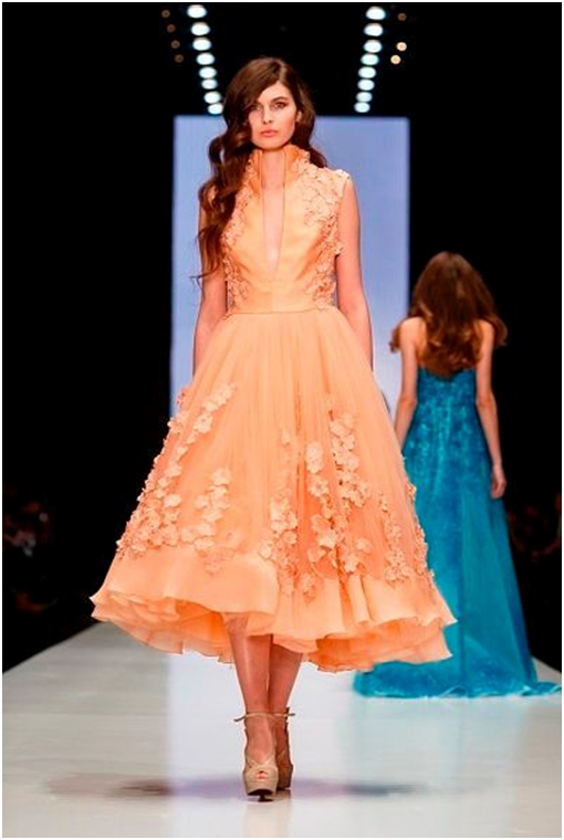 Платья с юбкой-пачкой по колено представлены практически во всех коллекциях, но, несмотря на одинаковую длину, все они смотрятся по-разному. Так, Ester Abner создала корсет с юбкой-пачкой, Tony Ward дополнил свою модель глубоким вырезом, а Alena Akhmadullina использовала дополнительную декорацию.