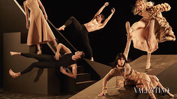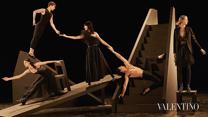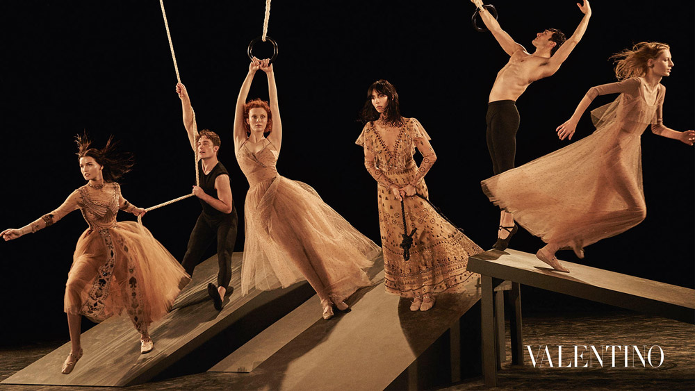 Итальянский модный дом Valentino превратил съемку новой рекламной кампании коллекции сезона FW 2016/17 в балетное представление. Модели Джулия Нобис, Карен Элсон, Кэтлин Аас и Джейми Бочерт позировали с профессиональными танцорами. Фотографом выступил Стивен Майзел.