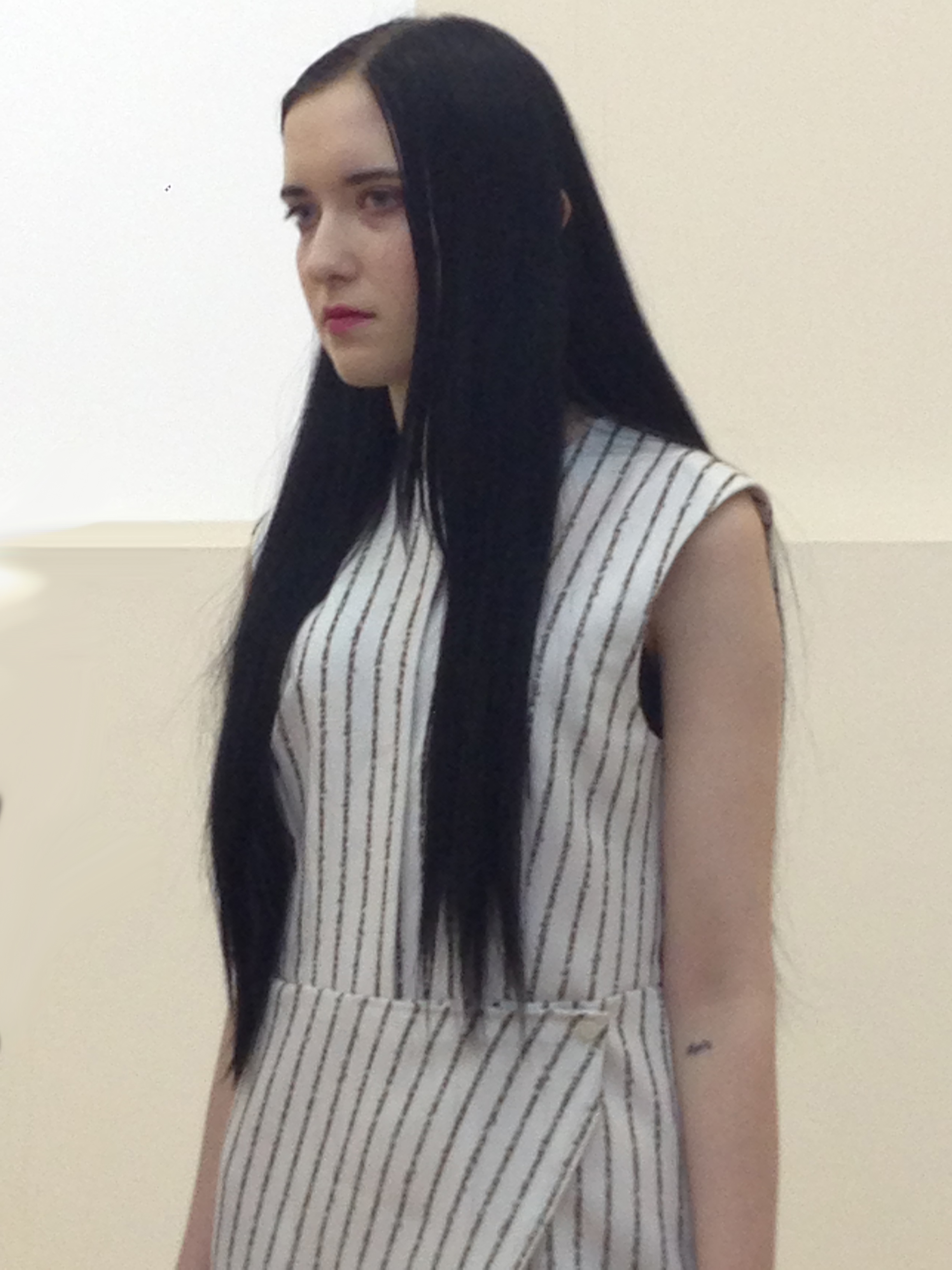 Федорову Татьяну вдохновили стихи Даниила Хармса. Даже сам показ и видеоролик были озвучены его стихами, а если присмотреться поближе к полосатой ткани, то можно увидеть, что каждая полоска – это строки из его стихов.