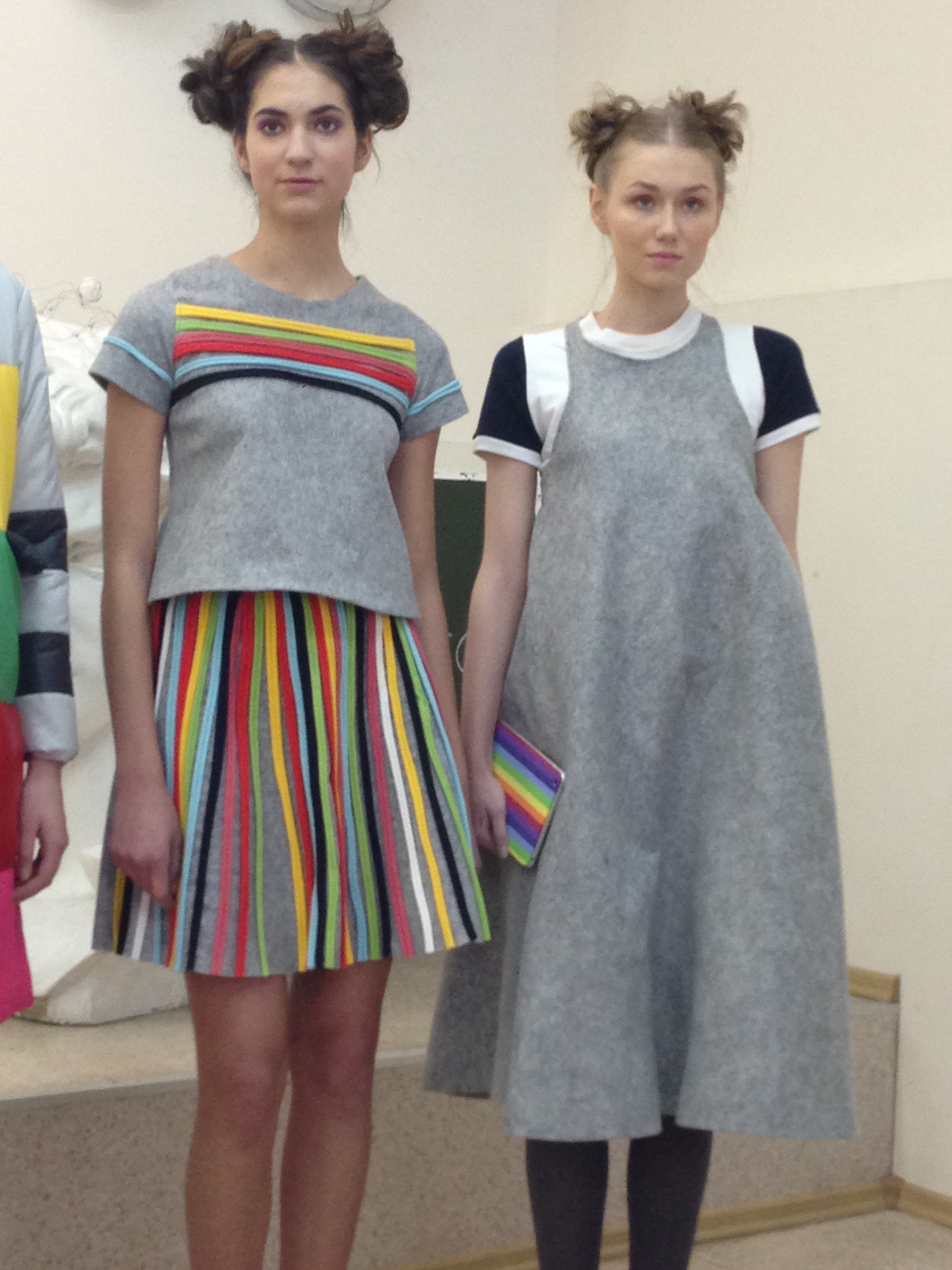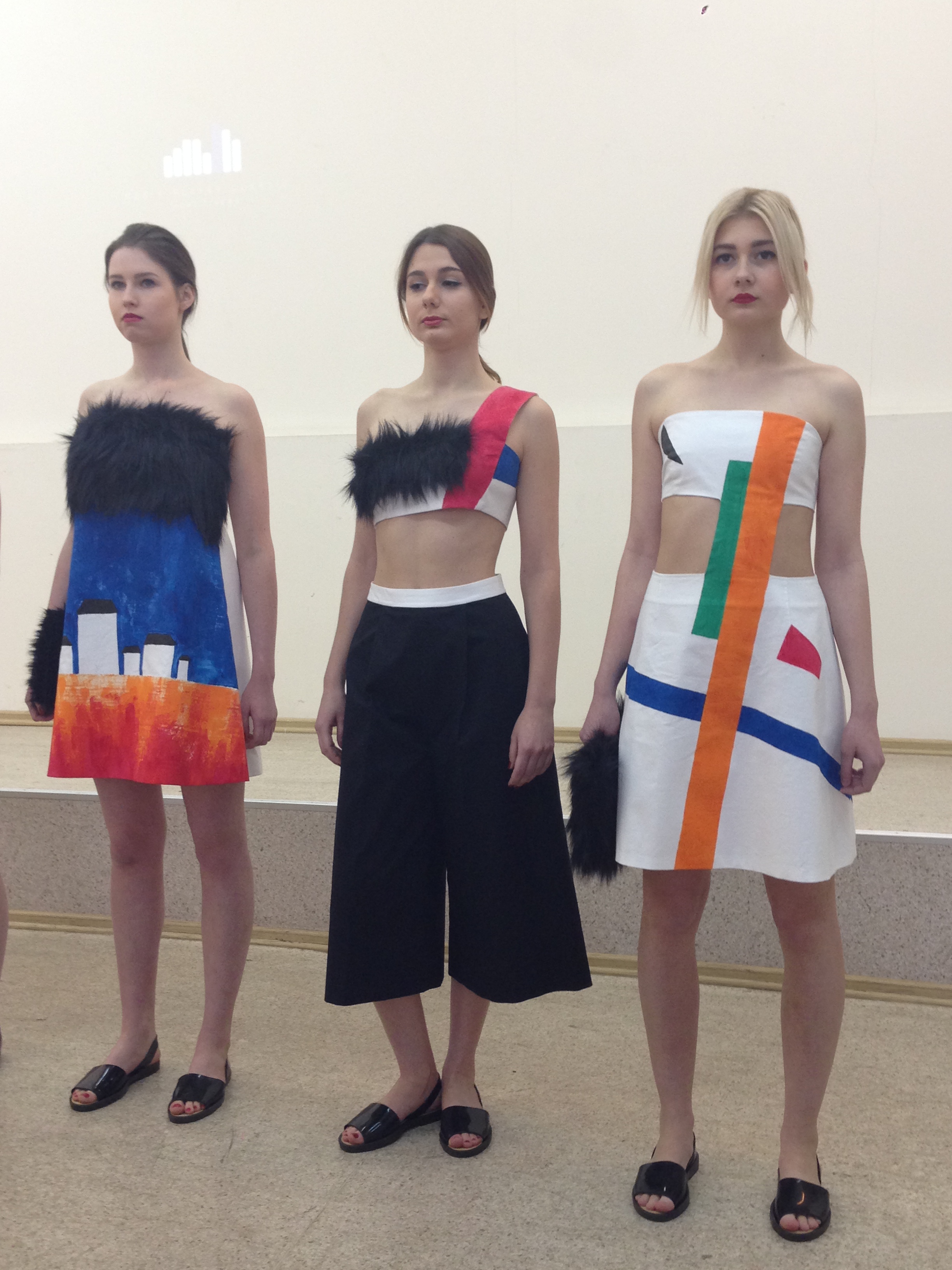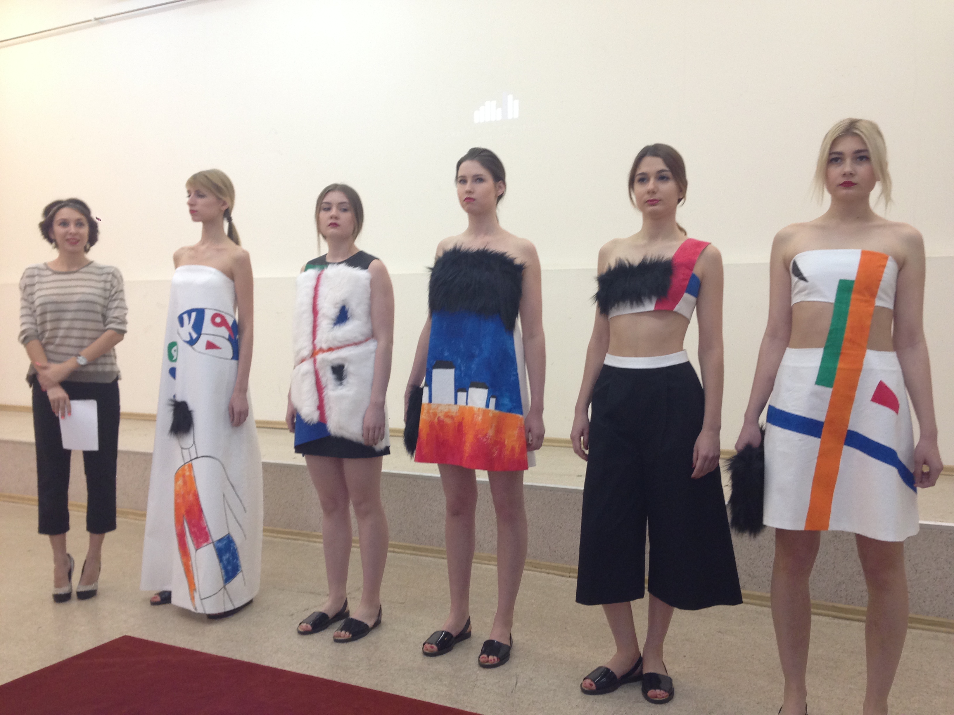 Коллекция Михеевой Анастасии была навеяна работами Казимира Малевича. В коллекции основной доминантой стали яркие цвета и четкая графика, смелые принты, выполненные на юбках и вставки из искусственного меха, создающие фактуры.